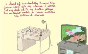 She has recently made the dreaded post-grad move back home to save money & documents her current living situation in her IRL homepage i went to college & all i got was an art degree. Returning to her hometown with no bedroom in a house of 8 people, Guillen maps out her scattered belongings alongside humorous anecdotes as a way of coping with a drastic lifestyle change for a young 20-something.
