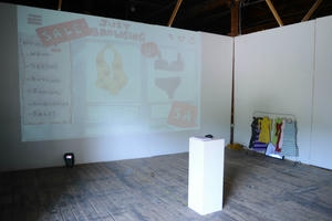 The installation engages with conversations around retail, the reinforcement of the gender expectations, competitive spending, and the ways we browse online for our clothing to avoid the anxiety of in-person interactions.