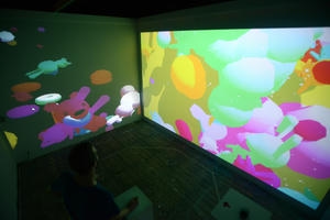 Smile While is an experience without rules, composed of a real-time digital canvas and several interactive games to be played alone or with others. Artist Matthew Keff uses game engine software to build custom applications that populate fantasy environments with playful 3D graphics, imaginative physics, and spatialized audio.