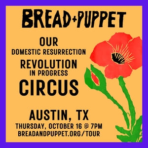 Ladles and Jellyspoons! The one and only Bread & Puppet Circus is back with Anti-Empire Art that acknowledges our beloved Mother Dirt, who makes us and unmakes us, and who presents urgently needed domestic resurrection services for the victims of this latest genocide. We are joined by Palestinian cranes on their way to Washington to replace the excrement in the White House with organic bird droppings, green frogs who teach the art of hopping over seemingly insurmountable problems, and gaggles of kindergarten butterflies who frolic to their hearts’ desire. Join us for a serious and silly circus: Our Domestic Resurrection Revolution In Progress!