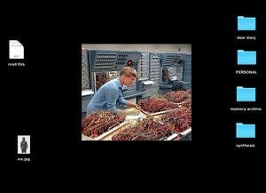 Virtual Viscera explores the ways in which today’s digital and online media shape individual identity and form a virtual connection with the individual’s brain and body. The interactive collage, designed to create an abstract self portrait of the artist, is comprised of the artist’s original images as well as found images and internet ephemera. The collage serves as a digital memory archive in which the virtual merges with the flesh. The exhibition of Virtual Viscera will feature a new audio piece which will allow the viewer to experience maximum sensory immersion.