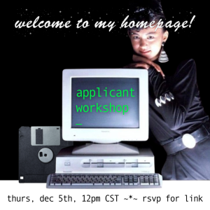 Join us on Zoom to learn about Welcome to my Homepage and the upcoming online residency application. There will be time to ask questions, get support, and work on your application in the company of peers. We'll break down what the residency opportunity is, who it's for, and how to submit a successful application.